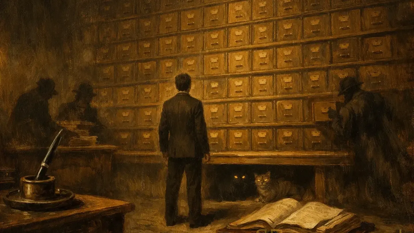Кафка в «Процессе» — крайний и, наверное, самый честный пример. Йозеф К. арестован. Обвинение не предъявлено. Ни в начале, ни в середине, ни в конце. Весь роман — это К., который мечется, разговаривает с людьми, которые знают больше него, но не говорят прямо, ищет ответы, которых в тексте нет. Читатель знает ровно столько же, сколько К. То есть ничего. И именно это — ужас. Не монстр, не угроза с именем. Просто: никто не объяснит.