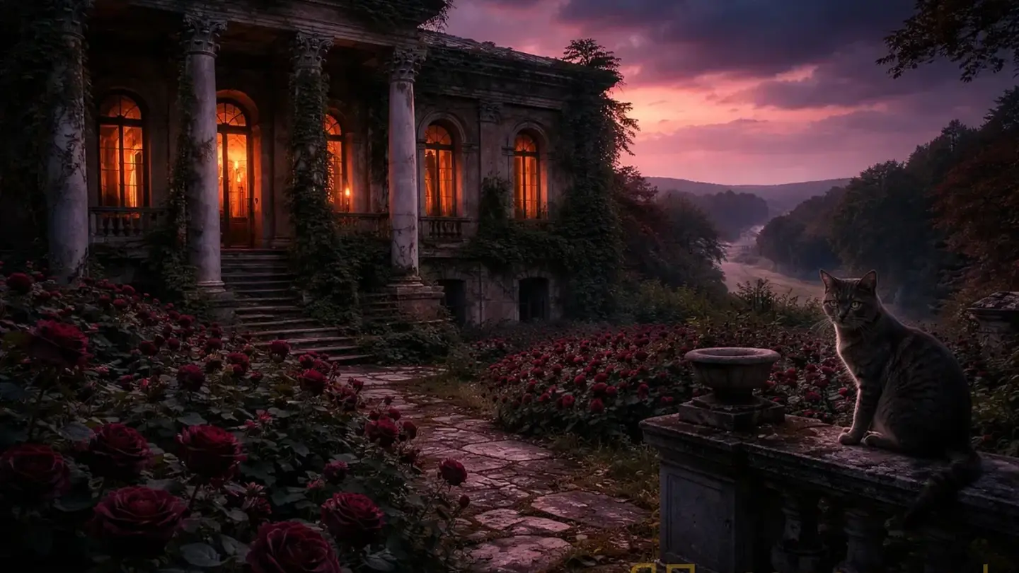 Внутренний двор, окруженный стенами усадьбы, — и в нем росли розы. Черные. То есть не совсем черные, конечно, — темно-бордовые, почти черные в сумерках, — но их были сотни, может быть тысячи, и они цвели, хотя был сентябрь, хотя усадьба стояла брошенной десятилетия, хотя за ними никто не ухаживал.