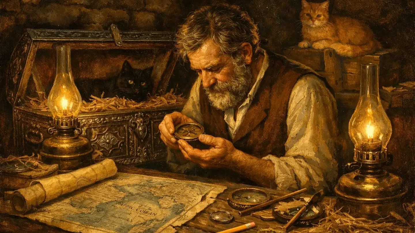 Содержимое сундука было известно: бриллианты — россыпь и двадцать три камня крупной огранки; золотые монеты различного происхождения — индийские мохуры, английские соверены, французские наполеондоры; и несколько предметов, которым при первом осмотре не придали значения: навигационные инструменты, старый компас, сверток карт.