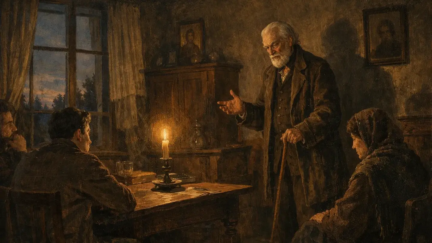 На этом старик замолчал. Мы сидели тихо, не решаясь нарушить молчание. За окном темнело. Свеча догорала, отбрасывая на стены длинные тени.