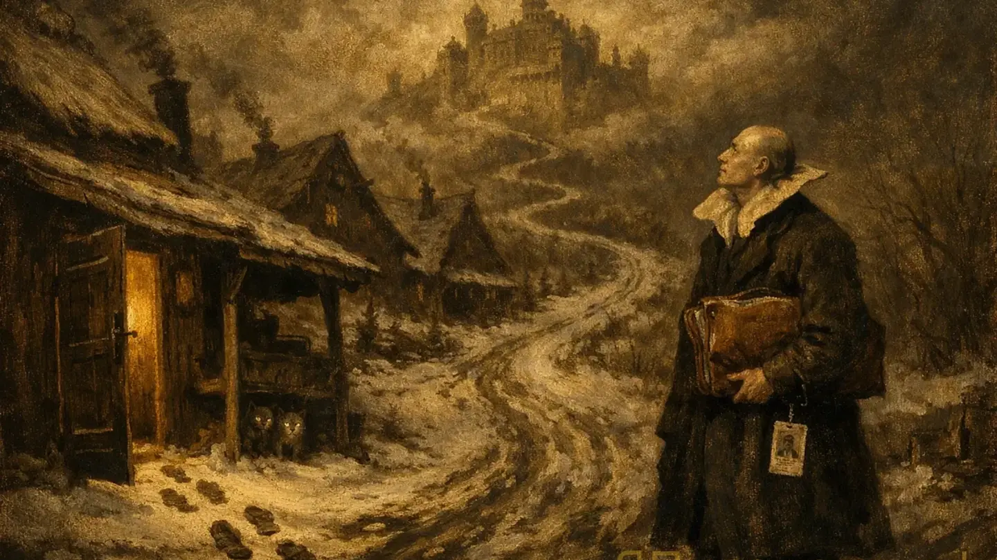 За окном лежал снег — ровный, плотный, белый, как чистый бланк. Замок был там, наверху. К. видел его каждый день. Башни. Крыши. Стены. Иногда ему казалось, что Замок приближается — не физически, а как-то иначе; как приближается мысль, которую не можешь додумать, — вот она уже почти здесь, уже почти сформулирована, но всегда — всегда — в последний момент расплывается.
