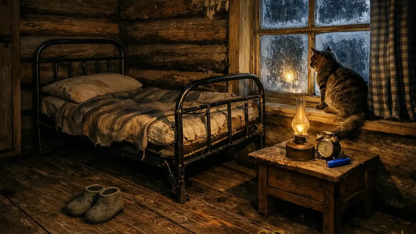 Она встала. Телефон взяла — фонарик. Через кухню прошла (три шага), дверь в горницу открыла.