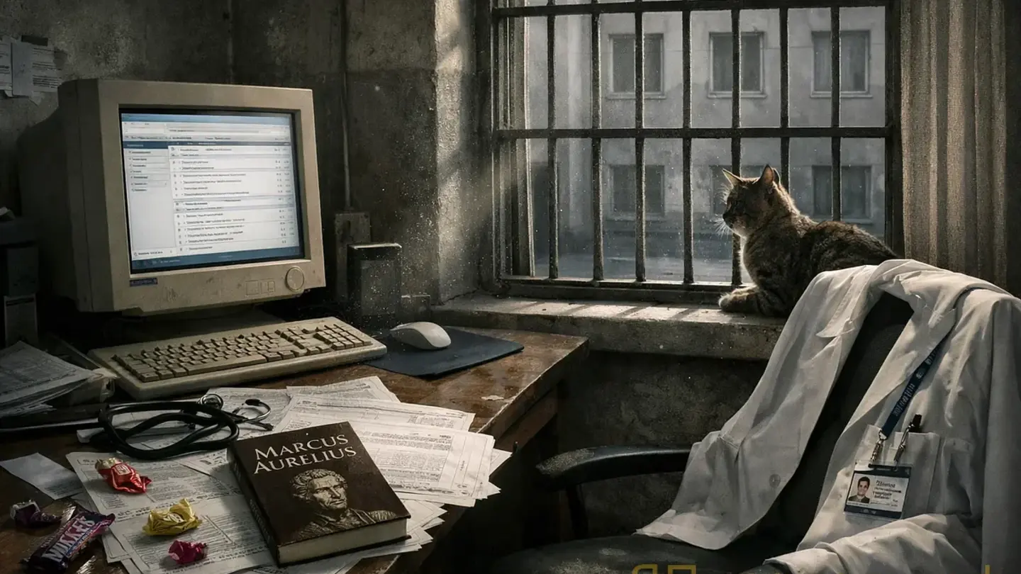 Только вот что, доктор. Вы рассуждаете о стоиках — красиво, не спорю. Дух сильнее обстоятельств, страдание иллюзорно, бла-бла-бла. А попробуйте пожить здесь. Неделю. Три дня. Никита двинет вам в бок кулаком — проверим, насколько ваш дух силен.