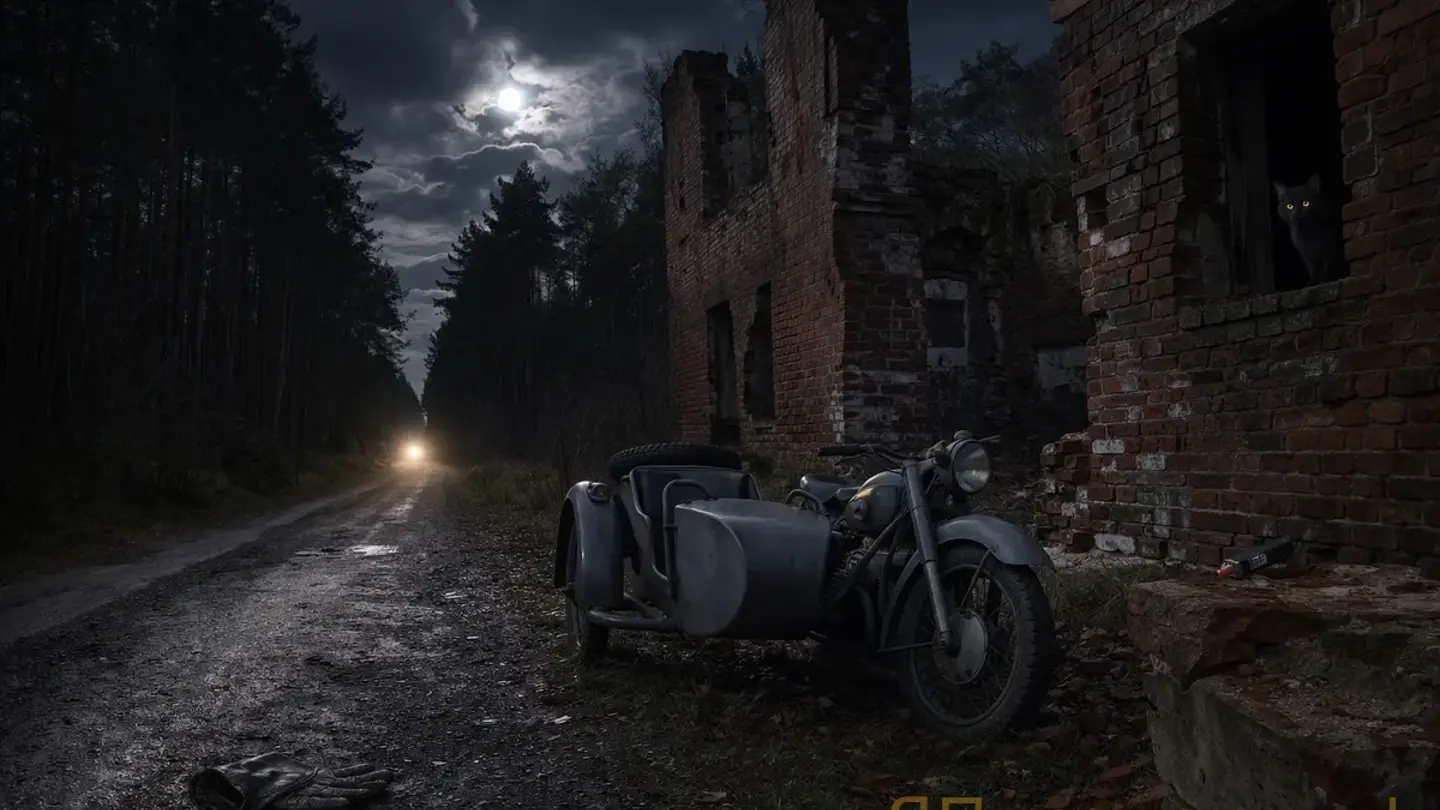 Мотоцикл у стены стоял на месте; коляска пустая. Но на сиденье коляски лежал предмет. Маленький. Тусклый. Он протянул руку — и ладонь обожгло холодом.