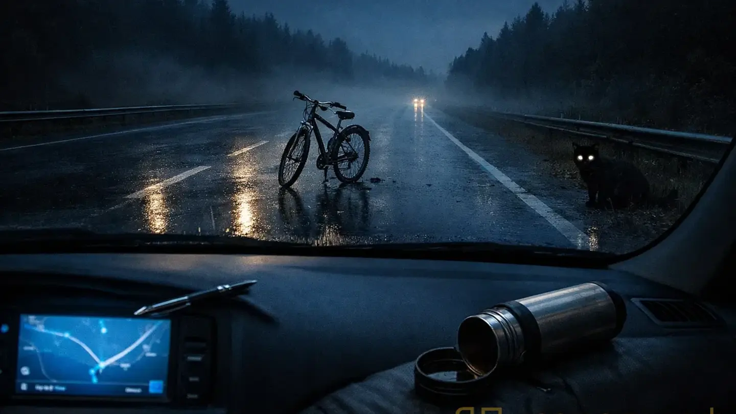 Впереди, метрах в пятидесяти, в конусе света фар стоял велосипед. Тот самый — со смятой рамой, вывернутым колесом. Он стоял прямо посередине дороги, и он не мог стоять, потому что у него было сломано всё, что позволяло стоять.