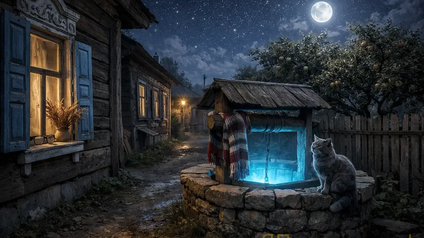 Колодец светился. Голубоватый свет из глубины — не ярко, а так, чтобы заметить. Если бы Полина была взрослой, можно подумать — отражение луны. Но луна висела за спиной, над крышей, и отражаться ей было в нечем; сруб был сплошной, дубовый, без щели.