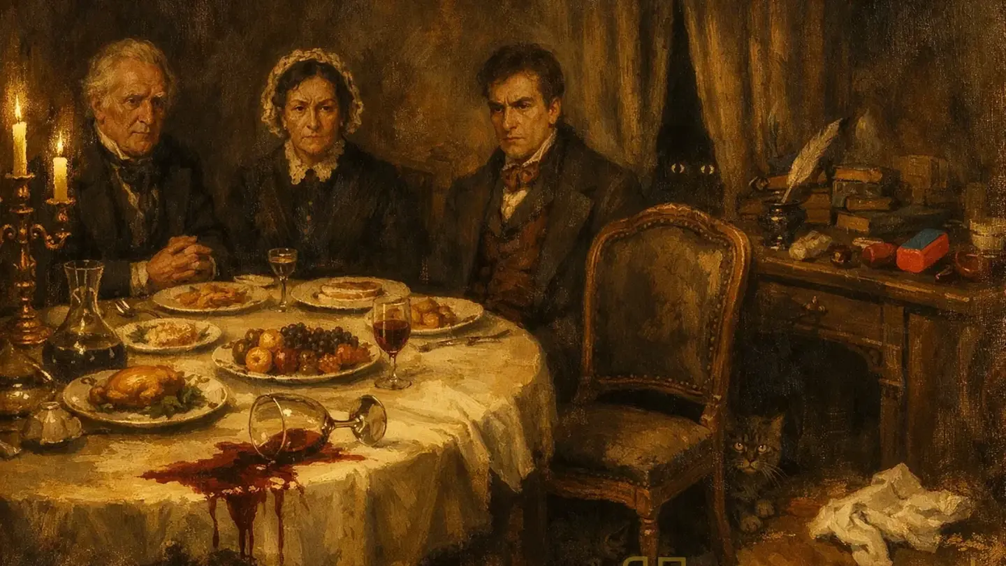 Важно: запрещённый вопрос должен быть известен всем персонажам, но не читателю. Сила именно в том, что все персонажи знают — и все молчат, каждый по своей причине. Эти разные причины молчания раскрывают характеры глубже любого монолога.