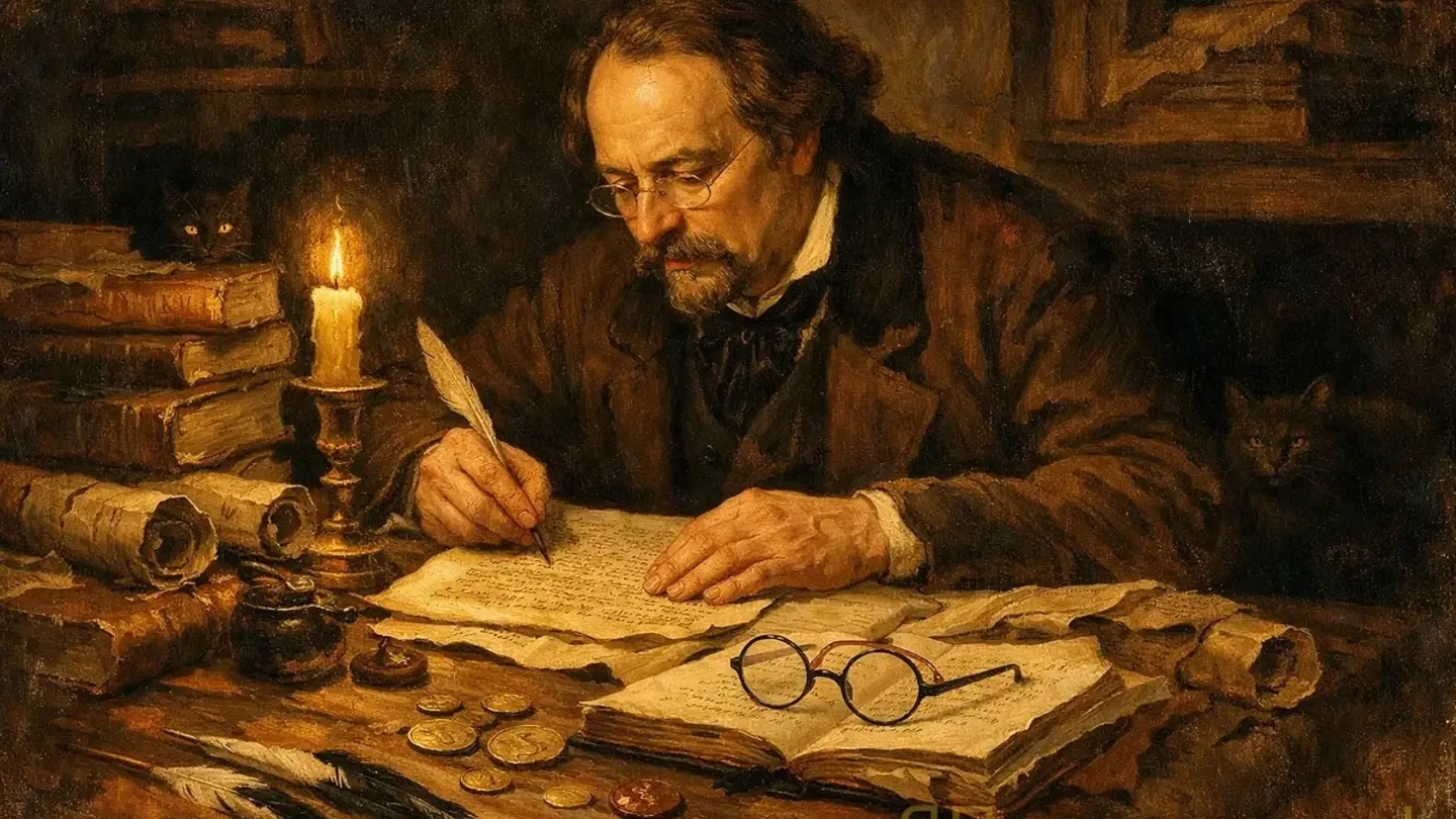 Алексей Константинович Толстой писал исторические романы в архивах, копируя фрагменты оригинальных документов XVII века прямо на полях рукописей для аутентичности.