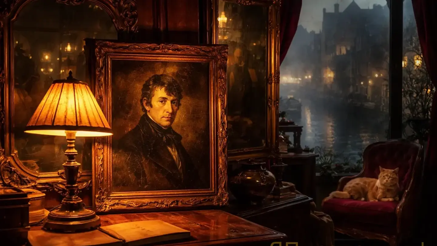 Мужчина на портрете. Волосы темные. Взгляд такой, что смотреть было нельзя, но и отвести невозможно — как будто ты в его власти, а не картина на стене. Девятнадцатый век, конец его, по сюртуку видно. Губы тонкие. Не улыбается, не мрачен. Что-то между. Знание — вот это видно в лице. Он знает то, чего знаешь не ты.