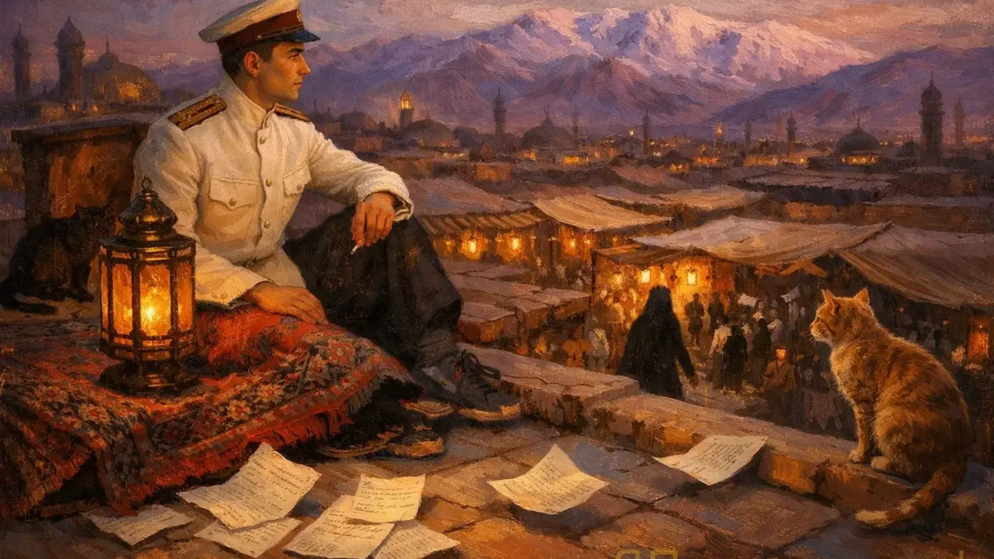 Внизу кричат торговцы. Осел декламирует Расина. Солнце садится за горы — багровое, огромное, равнодушное. Ему нет дела до русского офицера на персидской крыше. Ему нет дела ни до кого.