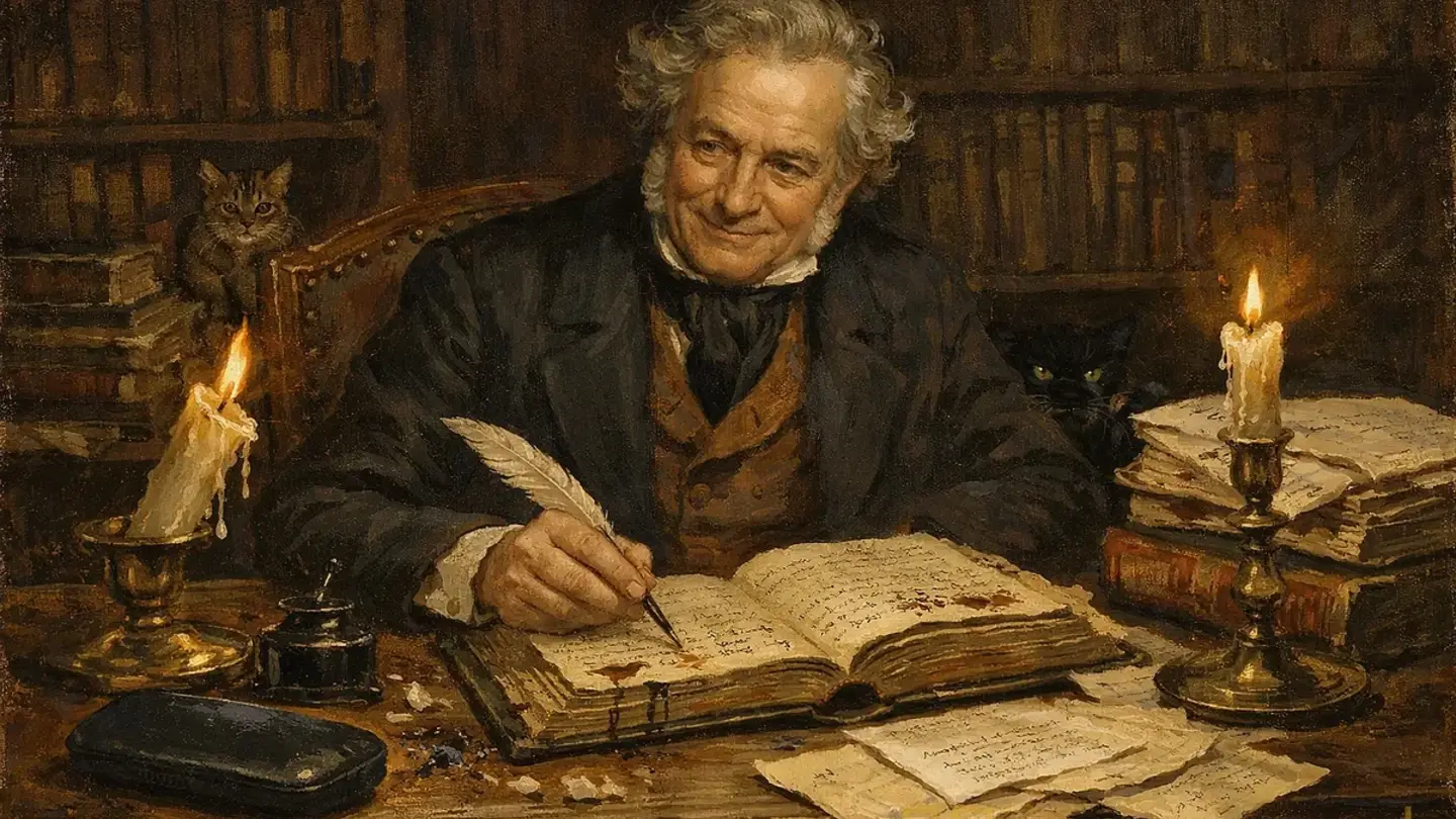 Оборотная сторона славы — люди забывают об авторе. Морис Метерлинк долгое время считался сложным символистом, мудрецом. Критики ломали голову над значением его пьес. Но в 2024 году библиотекари нашли личный экземпляр первого издания пьес. На полях его собственный почерк. Примечания, исправления. Примечание на полях Слепых: критики говорят, что я писал про духовную слепоту человечества. На самом деле я писал про слепого проводника, потерявшегося в лесу. Вот и все. На полях Пелеаса и Мелизанды: они говорят про невозможность взаимопонимания. Я просто забыл, чем кончаются отношения людей, которые друг друга не слышат. Результат потряс литературоведов. Метерлинк писал не философские трактаты в форме пьес. Метерлинк писал пьесы, которые имели смысл на поверхностном уровне. Всю глубину туда вложили интерпретаторы. Профессор Янв де Вольф: это как когда рисуешь картину, а потом критики видят в ней столько смысла, что сам начинаешь верить. Самое смешное примечание на Смерти Тинтагиля: один критик сказал, что это про неизбежность смерти. Я ответил да, конечно. На самом деле я просто любил имя Тинтагиль. Но были и серьезные примечания о творческом процессе: я пишу ночью. Днем слишком много света, слишком ясно видно, что я делаю.