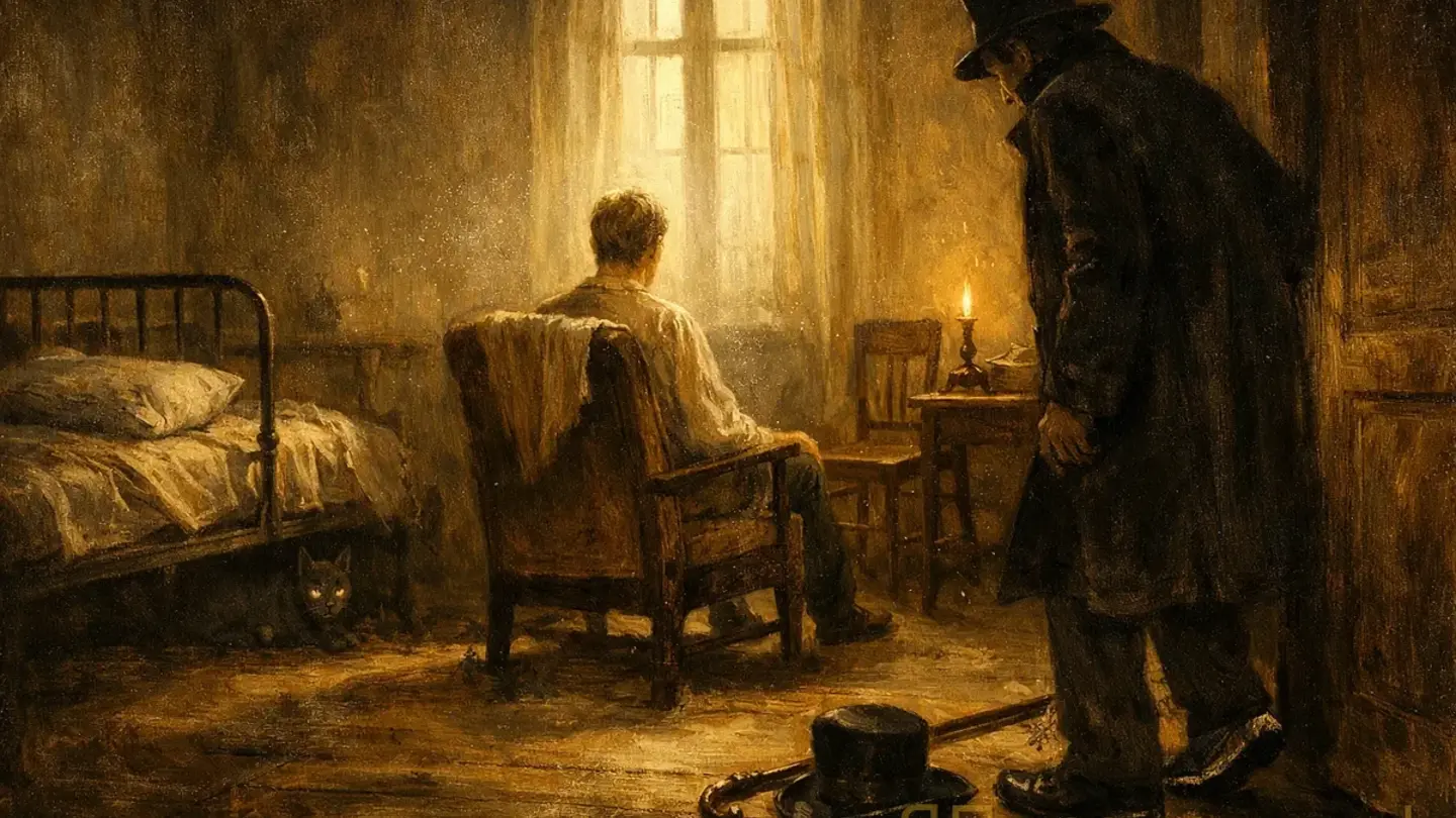 Коля вернулся в комнату и, сдерживая дрожь в пальцах, распечатал сперва письмо Веры Лебедевой: там были домашние пустяки, рождение ребенка, долги, споры о наследстве, и все это звучало почти неприлично рядом с этим бледным лицом у окна. Второе письмо было от генерала: неуклюжие признания, жалобы на здоровье и трогательное, почти комическое раскаяние. Князь слушал без выражения, только иногда переводил взгляд на огонь свечи.