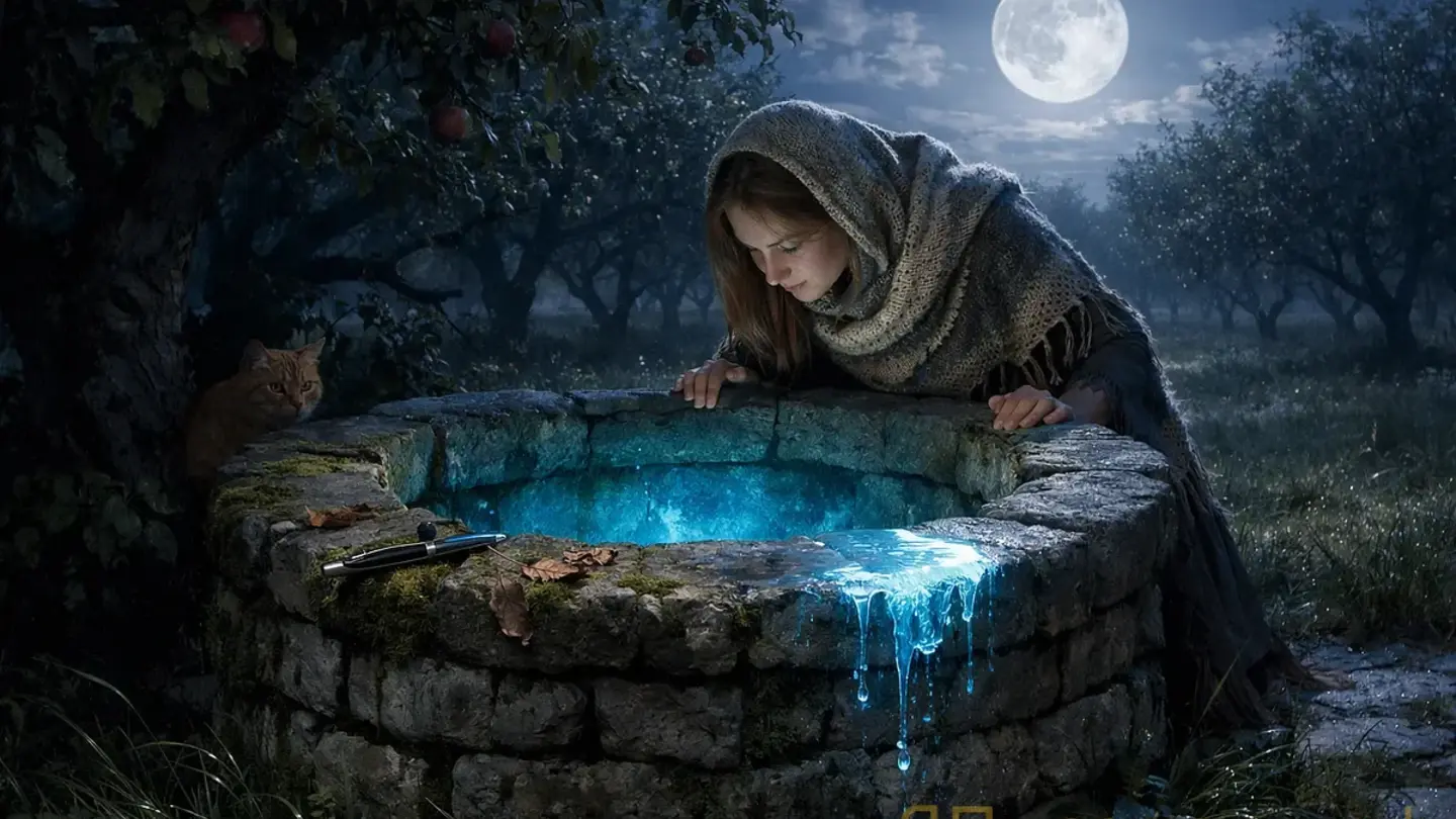 В ведре вода мерцала всё тише. Картины таяли, как тает узор на замёрзшем стекле, когда подышишь на него. Но прежде чем последний образ исчез, Агата увидела ещё одно: рыжий кот с белой грудкой сидел на краю колодца и смотрел на неё. Тот самый кот, что жил у бабушки и пропал прошлой осенью. Бабушка думала, что он ушёл в лес. Но кот сидел в лунной воде, живой, и мурлыкал.