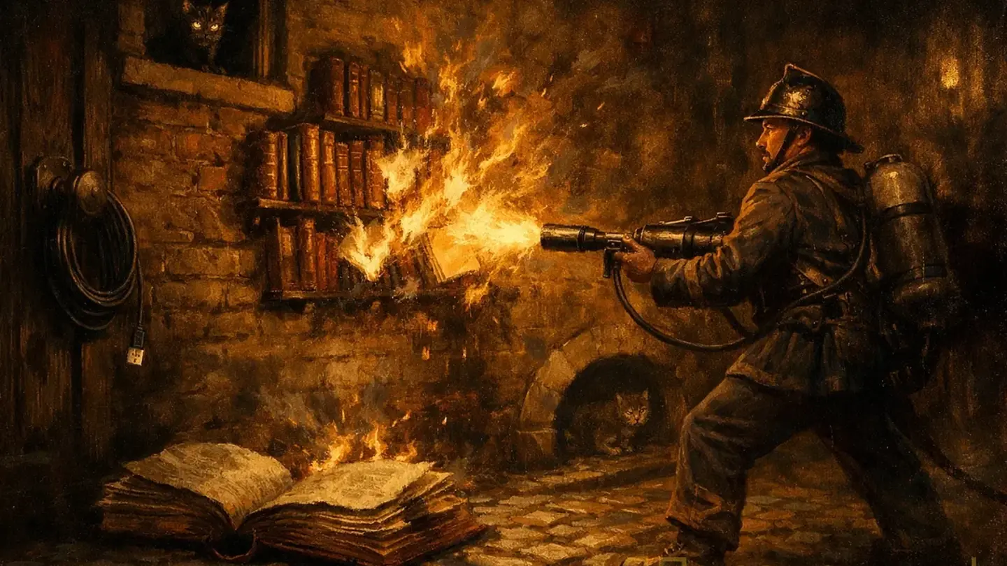 Вы точно слышали об этой книге. Скорее всего — видели ее на полке, может быть, держали в руках. Пожарники сжигают книги. Температура воспламенения бумаги. Брэдбери. Классика. Все это вы знаете, даже если не читали — и вот в этом первая, и пожалуй самая серьезная проблема «451 градуса по Фаренгейту»: эту книгу слишком хорошо знают понаслышке. Она стала культурным кодом раньше, чем большинство людей ее открыло. И это немного обесценивает первую встречу с текстом.