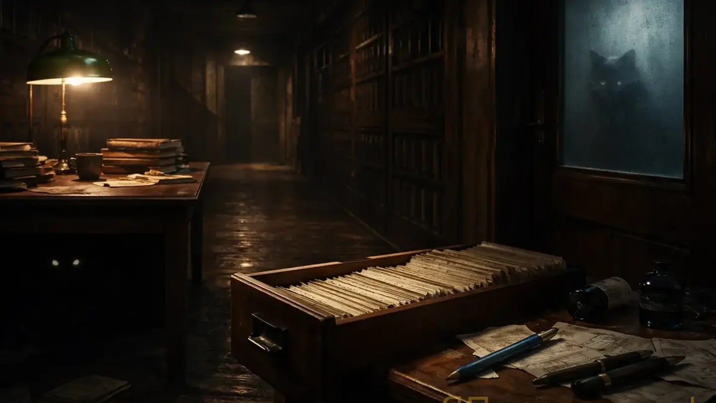 В 01:01 лампа над столом мигнула и погасла на секунду, будто кто-то закрыл ее ладонью. Почти сразу из коридора донесся сухой деревянный звук: ящик старой картотеки медленно выдвинулся до упора.