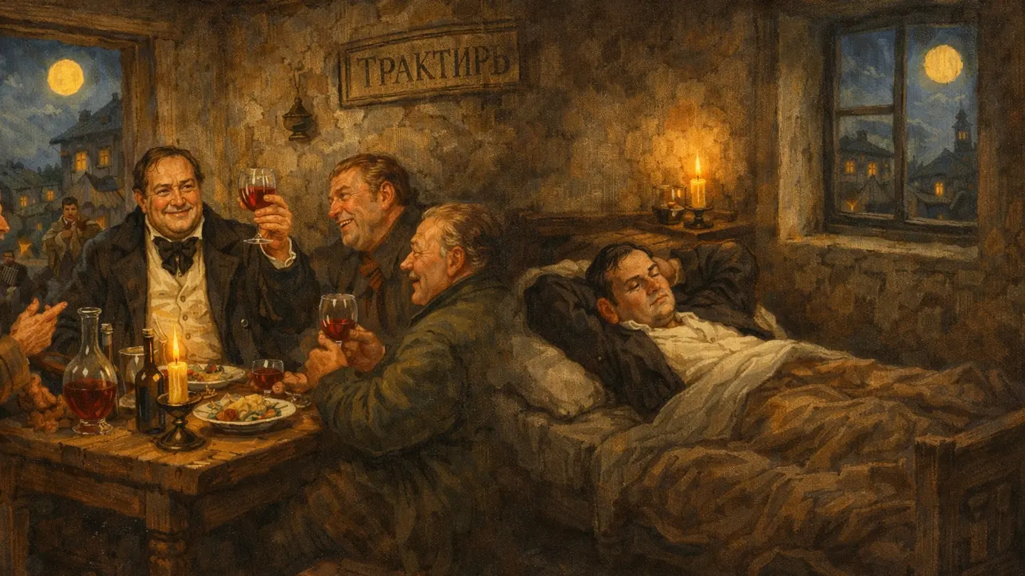 Скажем только, что ночью, когда все разошлись по своим номерам, Чичиков долго не мог заснуть. Он лежал на скрипучей кровати, глядел в потолок и думал. Думал о том, как странно устроена жизнь, как один поворот дороги может изменить всё, как важно оказаться в нужном месте в нужное время.