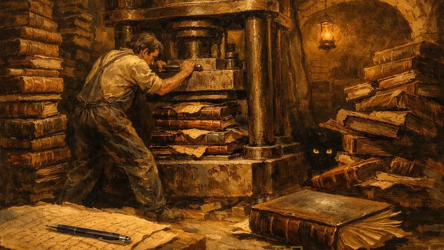 Именно столько лет его alter ego — человек по имени Ганча — бросал книги в гидравлический пресс в полуподвальном пражском складе. Гёте. Гегель. Иногда — Аполлинер. Книги, которые должны были идти в макулатуру, он спасал: прятал в карманах, уносил домой, складывал в башни до потолка своей квартиры, пока не оставалось места и для него самого, — а потом снова шёл на работу и снова нажимал рычаг пресса, который сплющивал слова в брикеты по двадцать кило. Дома у него стояли Кант и Шиллер, извлечённые из-под ножа пресса. Это такая чешская версия любви к литературе: когда тебе нельзя читать — ты хотя бы жалеешь бумагу.