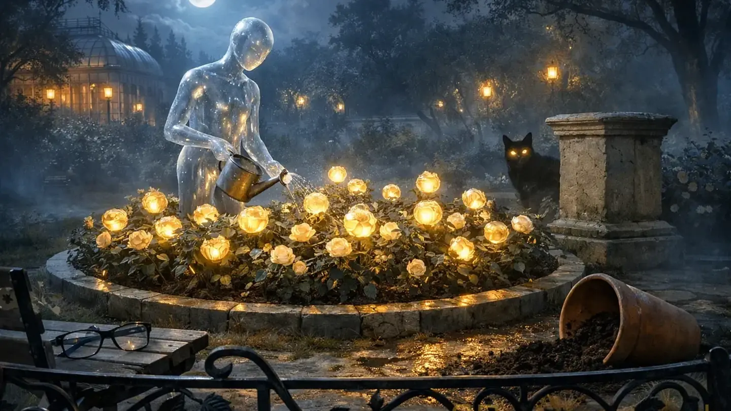 Стеклянный садовник поднял лейку и пошёл дальше — к чужим снам, которые нужно полить до рассвета. Спешить некуда. Ночь длинная.