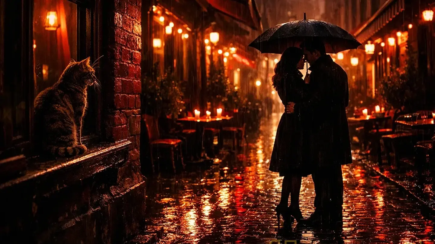 Сбежали. Как подростки—через чёрный ход, мимо кухни, где пахло креветками и горелым маслом. Он поймал такси одним жестом, почти магия. Дождь хлестал. Она промокла за пять шагов; волосы облепили лицо, тушь потекла, и ей было всё равно.