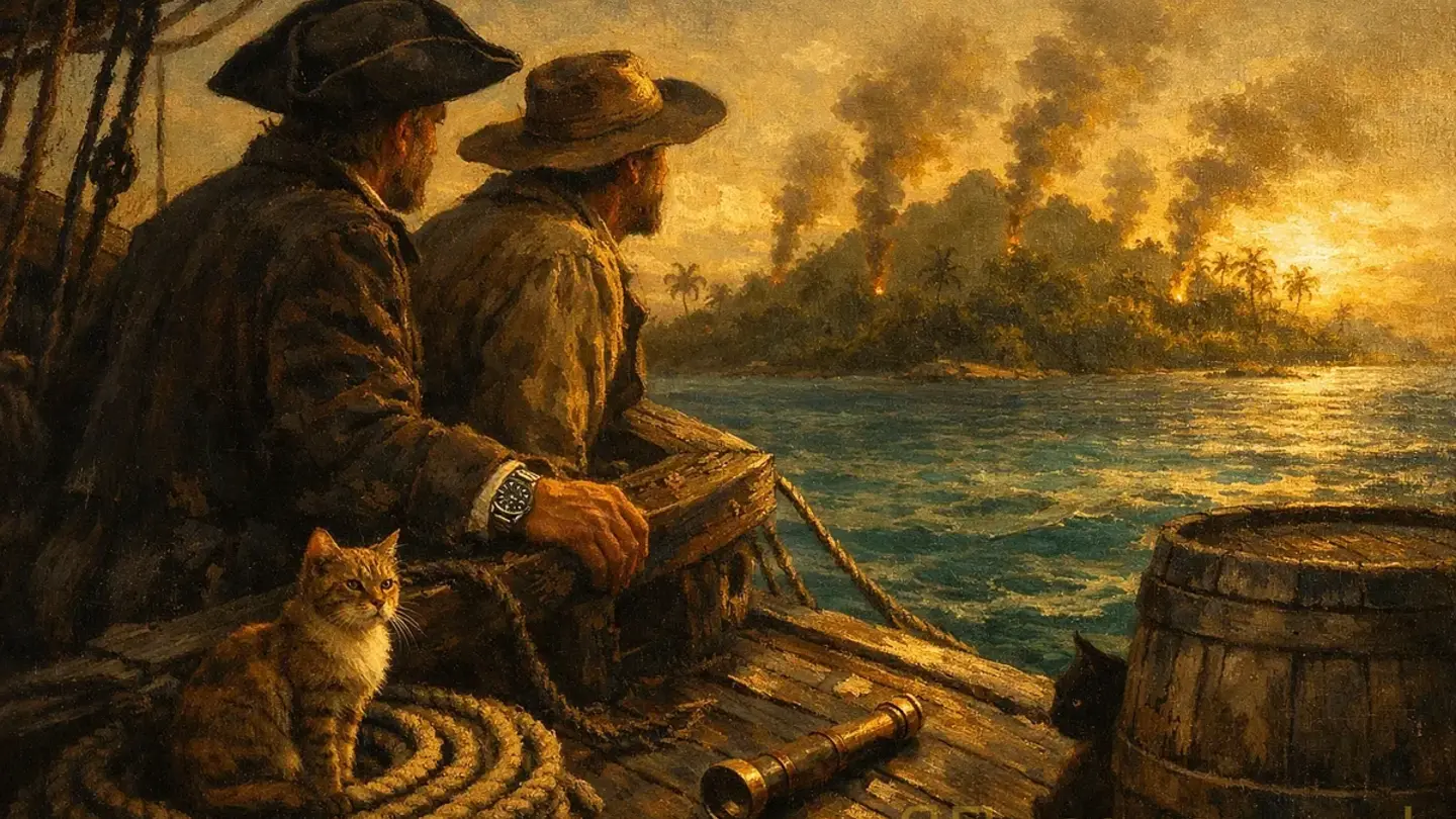 Сначала — облако над горизонтом. Потом — темную полоску. Потом — контур, который я мог бы нарисовать с закрытыми глазами. Западный мыс с наклоненной пальмой. Бухта. Скалы, о которые разбился мой первый корабль.