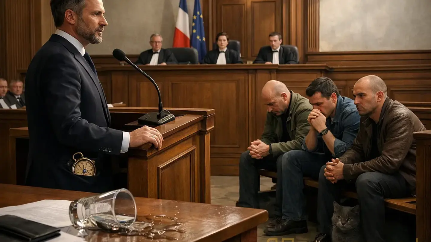 Адвокат ответчиков: Me Бертуччо, назначенный государством; его вид такой, будто он мечтает под стол пролезть