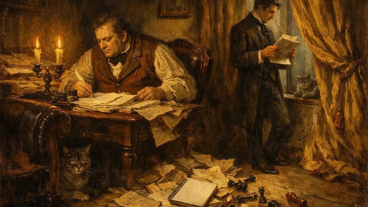 Маке пишет по-французски, почерк старческий, но твёрдый. Он не жалуется и не требует справедливости — скорее, просто рассказывает. «Первая дуэль Шарля» (он называет д'Артаньяна по имени, без фамилии) — его, Маке. Сцена в подвале у Атоса — его. «Александр брал мои листы и переписывал их заново, иногда улучшал, иногда ухудшал, но костяк оставался».