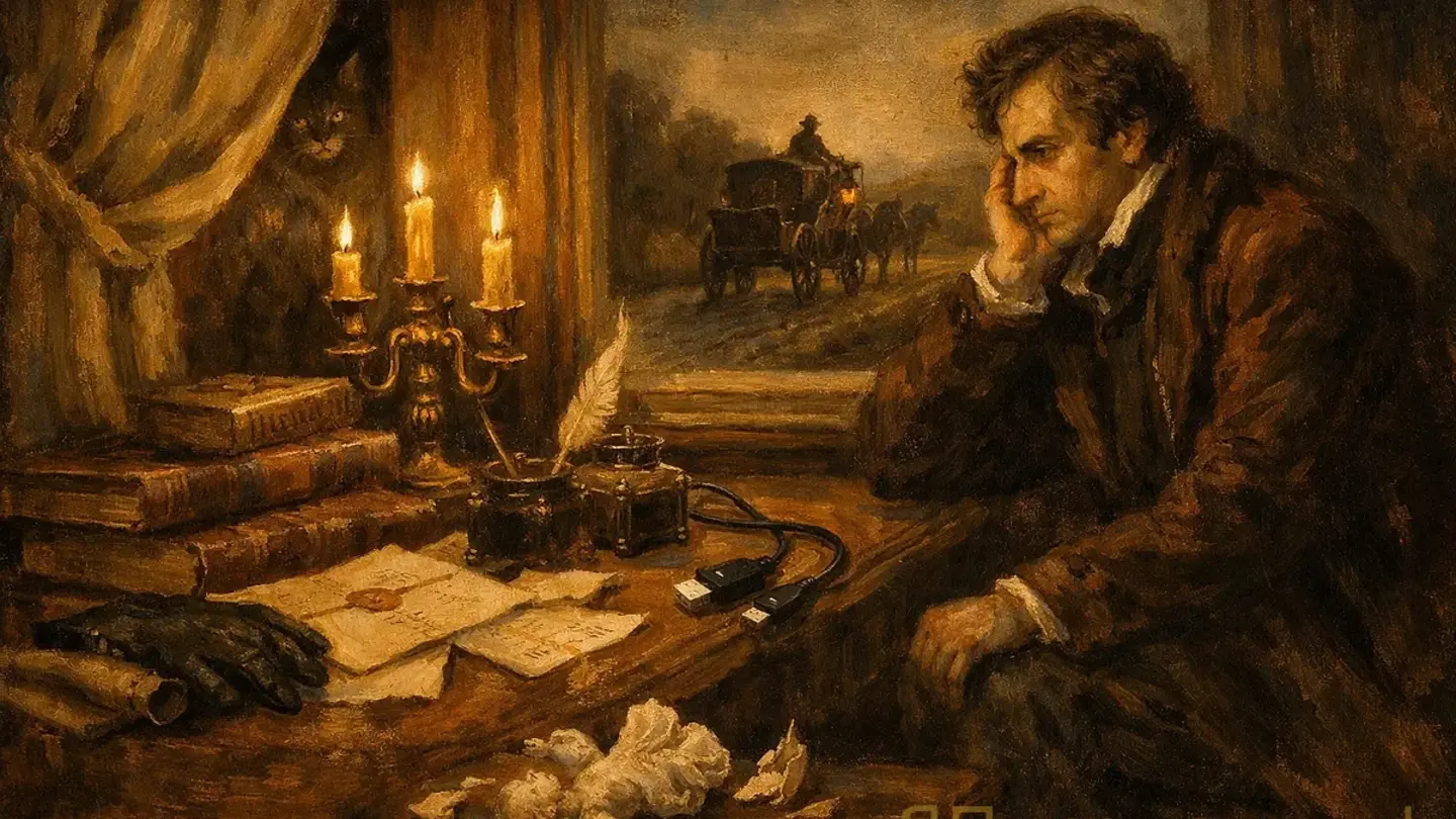 Онегин долго стоял у окна, глядя на пустую улицу. Карета Татьяны давно скрылась за поворотом, но он всё ещё слышал шелест её платья, всё ещё чувствовал запах её духов — тот самый, деревенский, что помнил с юности, только теперь облагороженный столичной жизнью.