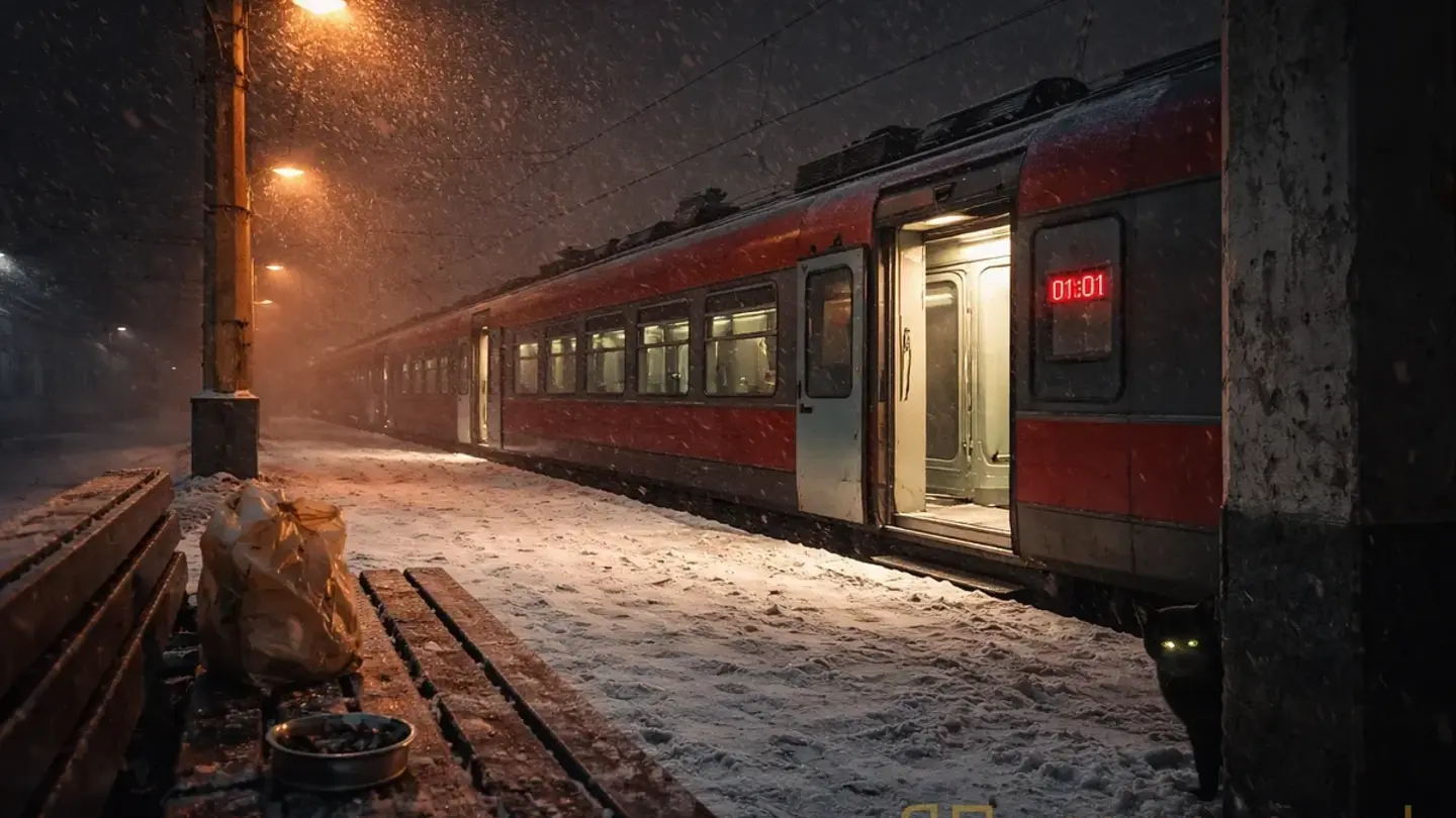 Но платформа была пуста. Совершенно. Для Москвы это было... неправильно. Даже ночью, даже в декабре, даже в это время. Табло над кассой показывало 00:47. Четырнадцать минут. Может, пятнадцать.