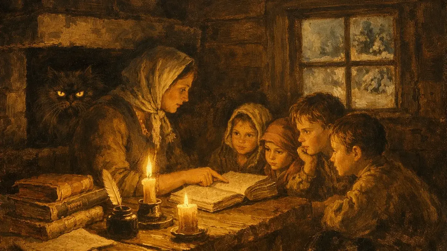 Вечером в школу пришли дети — чумазые, в рваных тулупах. Катюша раздала им буквари и стала учить читать. «Аз, буки, веди...» — повторяли детские голоса, и в этом хоре было что-то такое чистое, такое обнадёживающее.