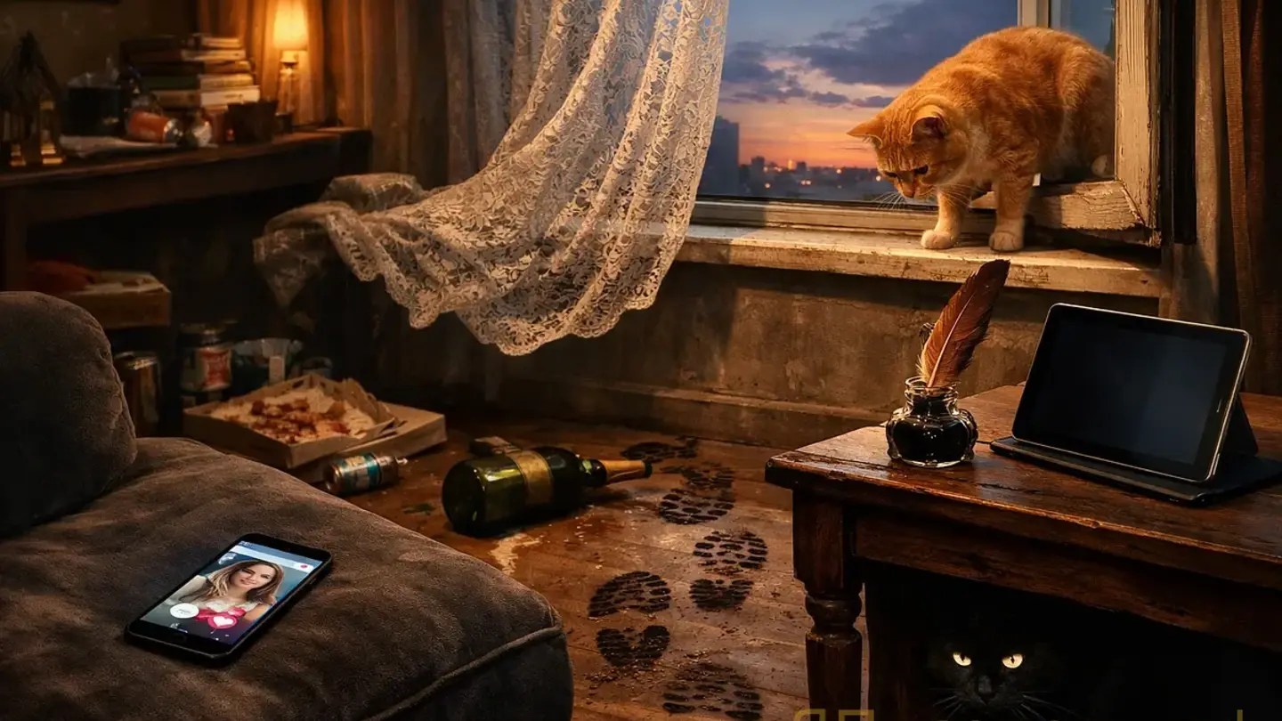 🎤 *0:47* — «Феклушка, ну ты мне и подсунула! Пять штук! Я полночи анкеты листала, глаза уже красные. Один — экзекутор, разговаривает только про мой дом. Второй — моряк, пятьдесят два года, сватался семнадцать раз. СЕМНАДЦАТЬ. Фекла. Это не жених, это рецидивист какой-то. Третий — хочет, чтобы я по-французски говорила. А я bonжур и мерси, и все! Четвертый — пустой профиль, ни фото, ни слова. А пятый… пятый написал "здравствуйте" и замолчал. Три дня молчит. Это нормально?»