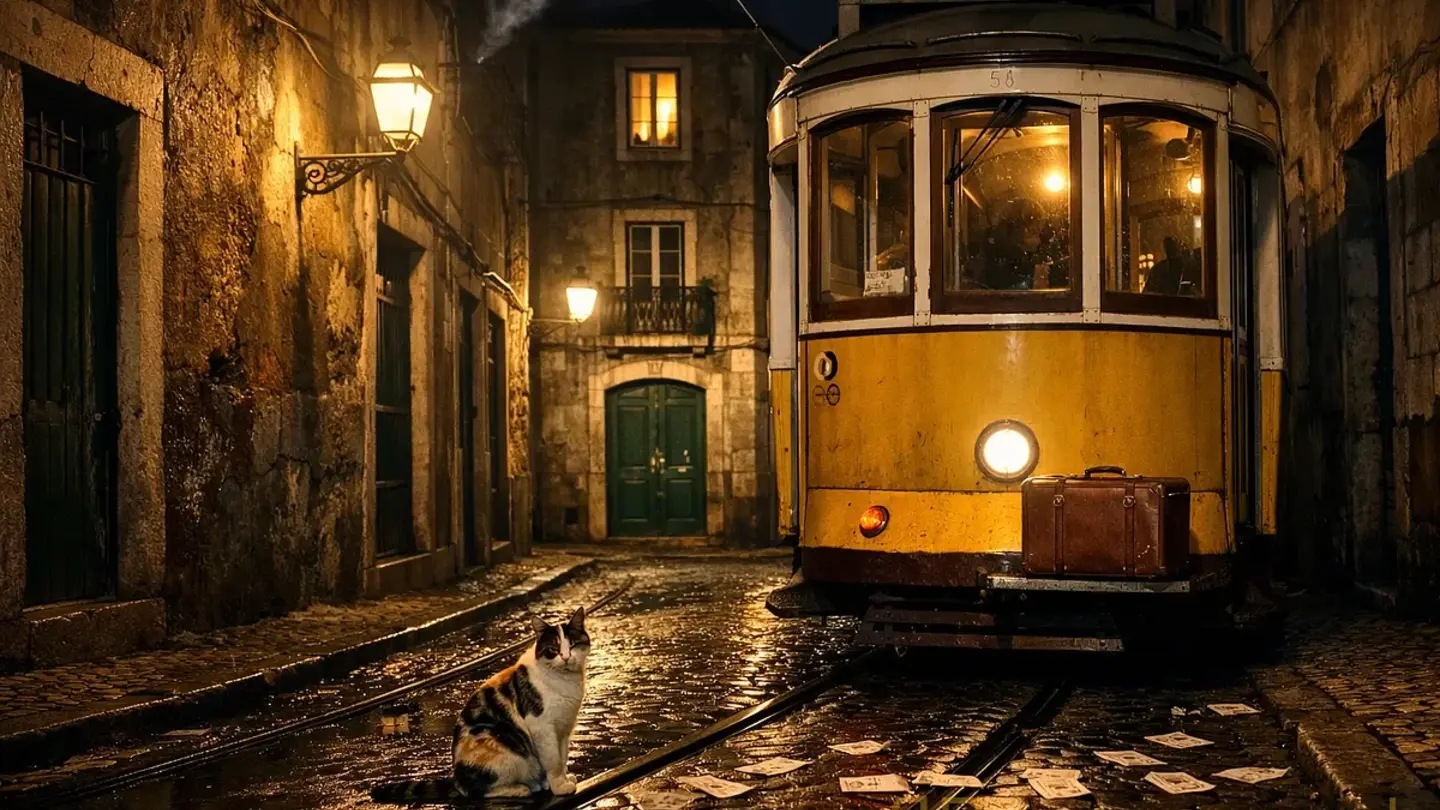 Но однажды — июнь, жара, жасмин, запах тины с реки Тежу — в трамвай на «Руа да Саудаде» вошла женщина с ребёнком. Чемодан. Взгляд. Девочка лет четырёх. Она села рядом с доктором. Доктор улыбнулся. Ребёнок повернулся, помахал Жозе в зеркало.