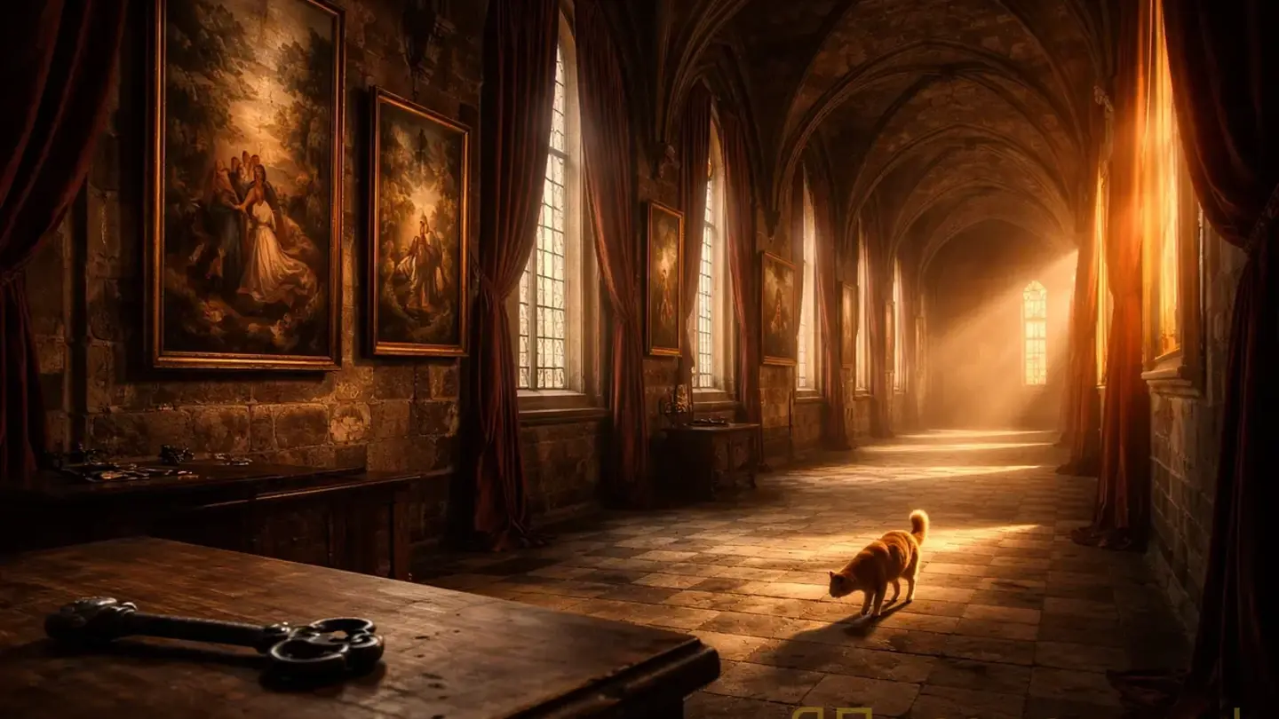 Она открыла дверь западного крыла. Длинная галерея, узкие окна, пыль в воздухе — золотая в лучах закатного солнца. Четырнадцать картин на стенах.