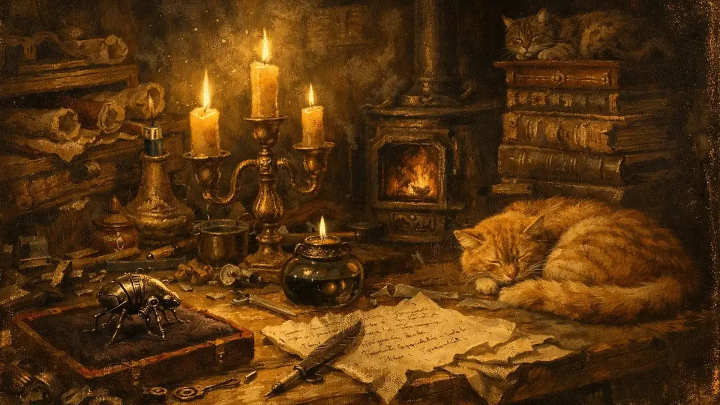 [Видео: тёмный подвал, свет свечи, руки что-то делают над столом]