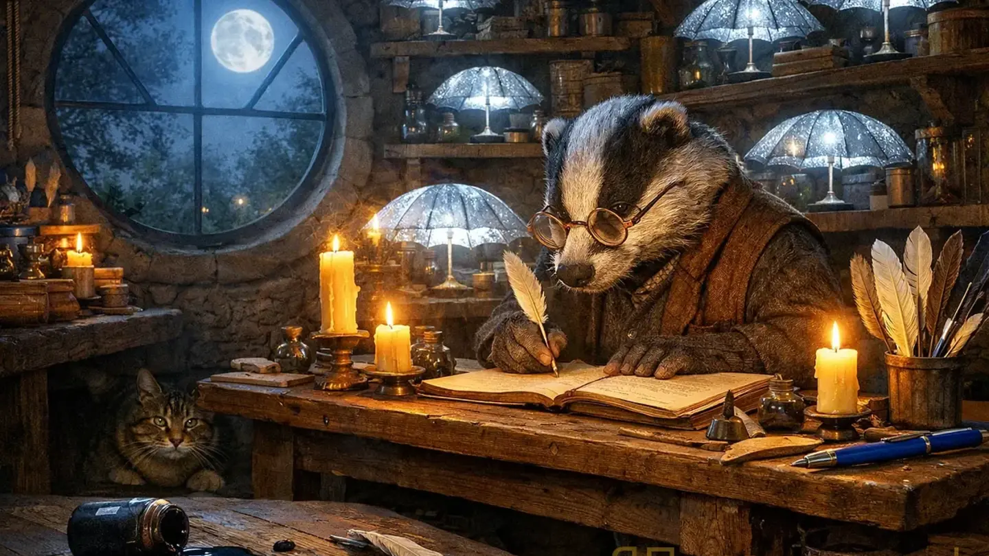 Хозяин мастерской — старый барсук по имени Августин — уже много лет создаёт зонтики. Но не простые зонтики от дождя. Он ткёт их из лунного света, который собирает серебряным ведёрком с крыши своего дома. Такие зонтики защищают от плохих снов, от ночных страхов и от той особенной тоски, что порой накатывает в самые тёмные часы.