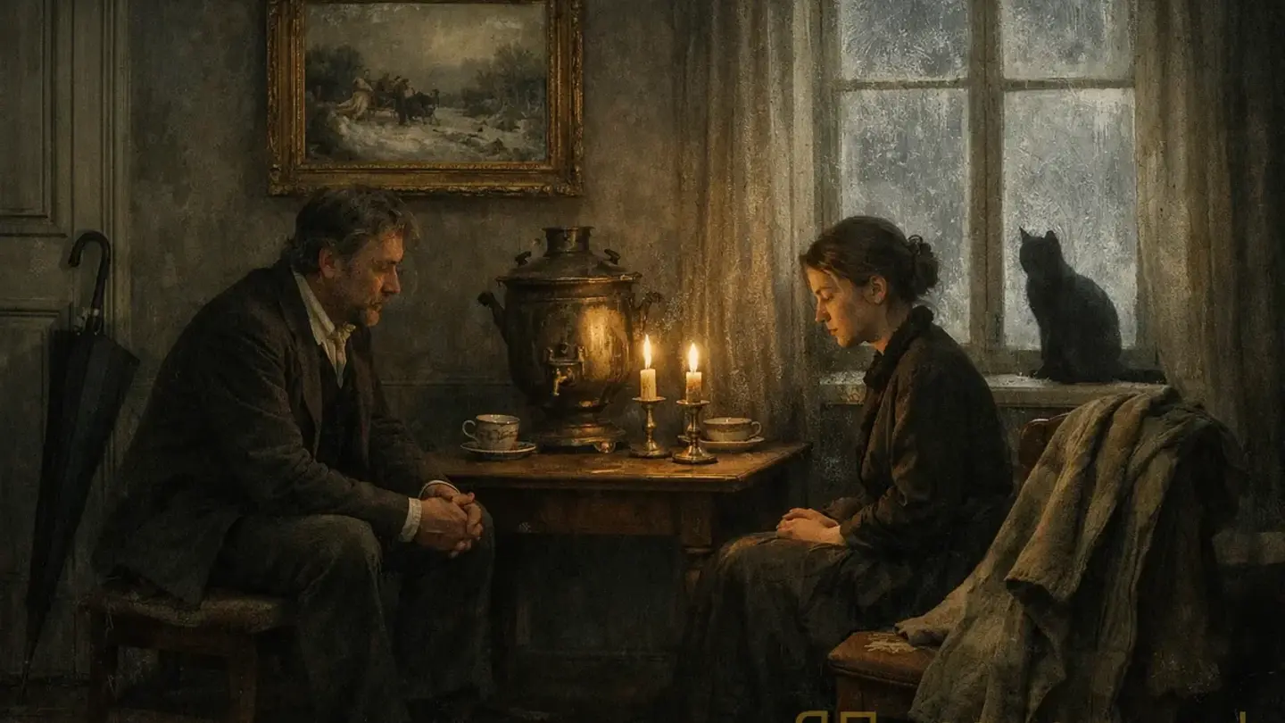 В этот раз он пришёл раньше назначенного. Номер был на третьем этаже, маленький, с серыми обоями и запахом пыли, который не выветривался ни зимой, ни летом. На столе стоял остывший чайник. Анна Сергеевна сидела у окна в сером платье и смотрела на улицу. Когда он вошёл, она обернулась, и лицо её — бледное, с тёмными кругами под глазами — дрогнуло, но она не встала ему навстречу, не бросилась к нему, как бывало прежде. Она только сказала: