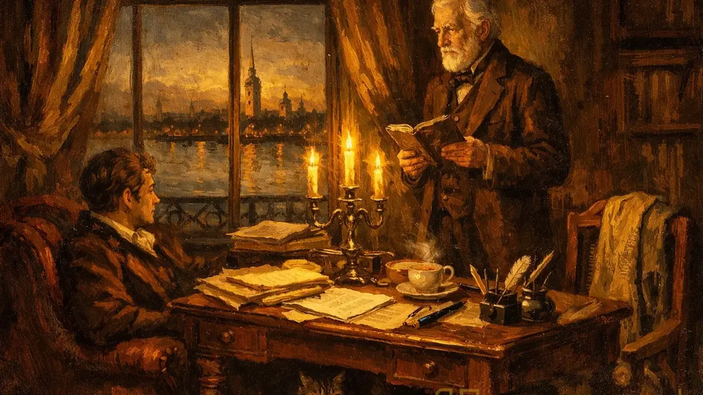 Племянник подошёл к окну и встал рядом с дядей. Оба смотрели на вечерний Петербург: на фонари, зажигавшиеся вдоль набережной, на силуэты прохожих, на тёмную воду Невы.