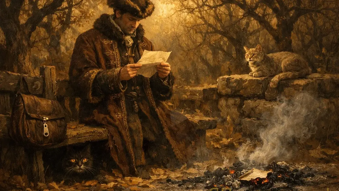 Я долго стоял посреди двора с письмом в руке, не решаясь его открыть. Был тихий октябрьский полдень, пахло антоновскими яблоками и первым снегом, который ещё не выпал, но уже угадывался в воздухе. Марья Ивановна была в доме, шила что-то у окна, — я видел её силуэт сквозь запотевшее стекло. Дети спали.
