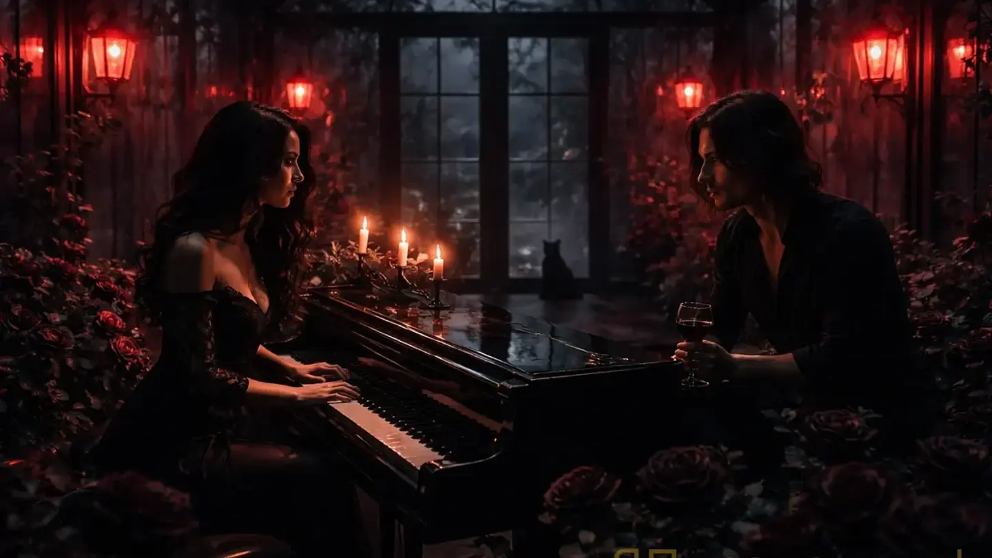 Я сыграла тише, а сердце - громче. Когда его губы едва коснулись моей скулы, мир вокруг расплавился в красном свете ламп, и я захотела, чтобы эта ночь никогда не заканчивалась.
