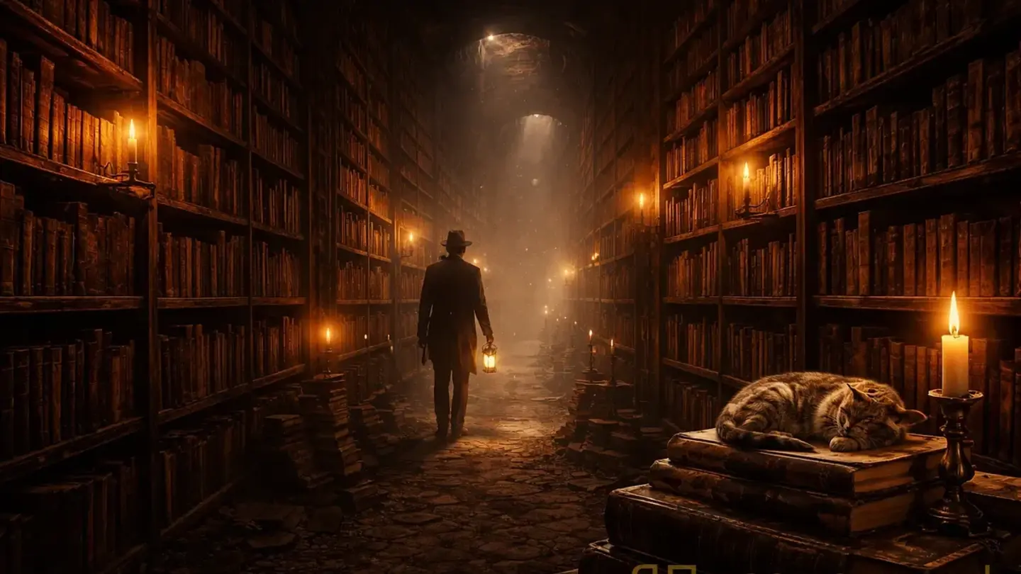 Внутри пахло пылью и временем. Бесконечные ряды стеллажей уходили в темноту. Книги — без названий на корешках — стояли так плотно, что между ними нельзя было просунуть палец.