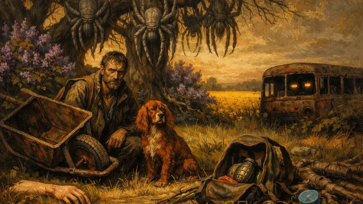 Наутро ветер переменился, и запах сирени долетел даже сюда — два километра, рапс, овраг. Густой, наглый, почти оскорбительный. Природе плевать на пауков. Рапс цвёл. Сирень пахла. Трава лезла сквозь асфальт. Мир умирал и расцветал одновременно — ему было равно, кто по нему ползает, на двух ногах или на девяти.