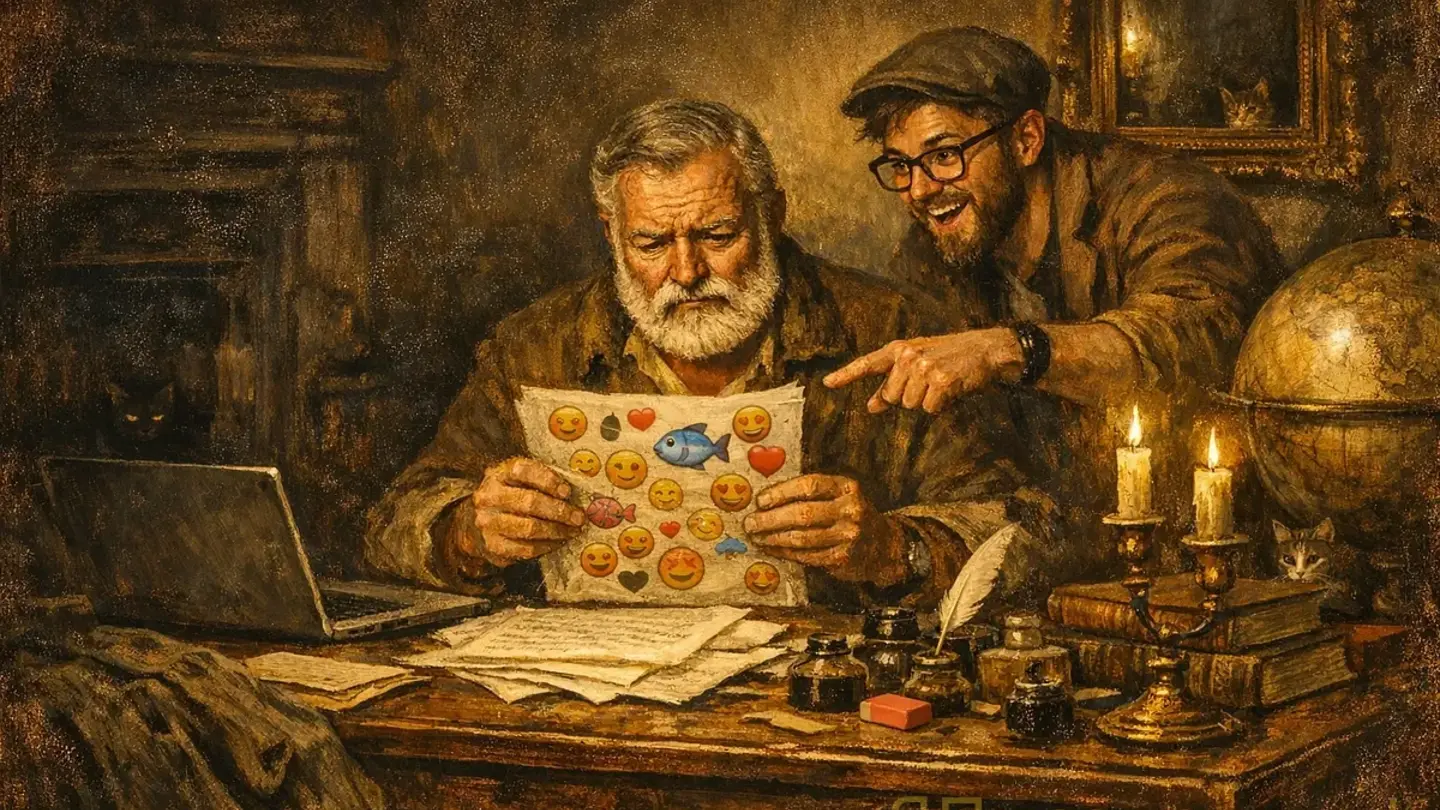 Хемингуэй приносит рукопись в современное издательство. Редактор листает и говорит: «Эрнест, тут слишком мало эмоций. Добавьте эмодзи!» Хемингуэй молча вписывает после «Старик поймал рыбу» — 🐟. Редактор: «Гениально! Теперь понятно, что это рыба!»