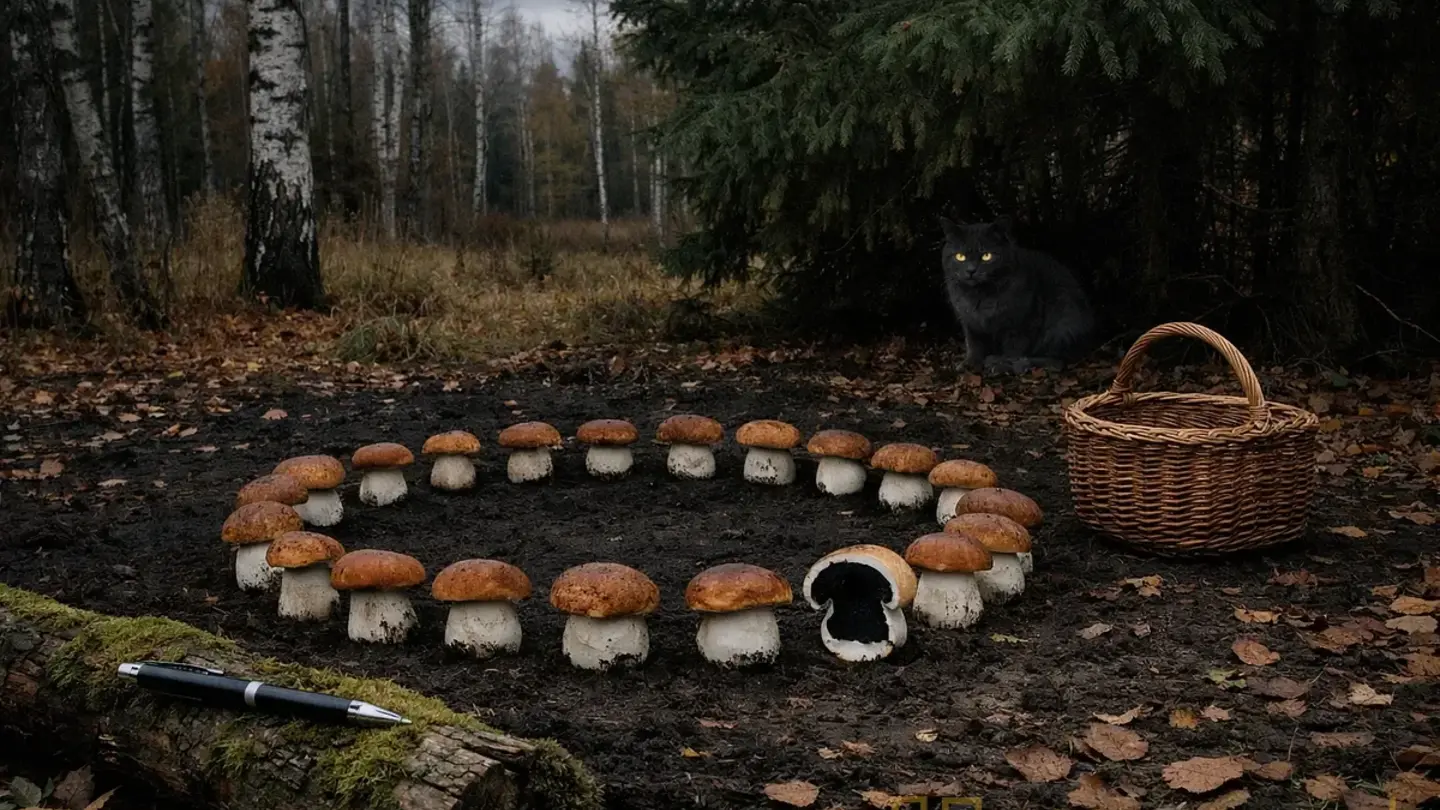 Грибы. Штук тридцать. Может двадцать восемь — потом Ира скажет ровно тридцать, и спорить он не будет. Они стояли кругом. Не россыпью, не в кучку, а кругом — совсем ровный круг, как будто кто-то воткнул палку, верёвку привязал, прошёлся и втыкал грибы через одно расстояние. Диаметр метра четыре, может пять. Внутри — ничего. Голая земля. Мох не растёт, травинка не растёт, ничего. Просто чёрная, влажная земля; вот такая бывает на кладбищах, на свежих могилах.
