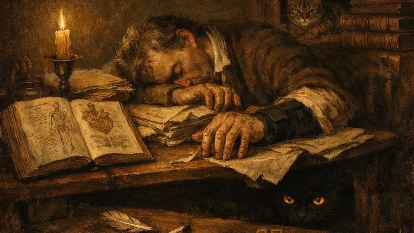 Но самая недооценённая профессиональная болезнь писателя — это, конечно, бессонница. Не романтическая «ночь творчества с музой». Обычная хроническая бессонница, когда в три ночи лежишь с открытыми глазами и прокручиваешь диалог персонажа, которого ещё не существует. Кафка вёл дневник именно в такие часы — и его записи полны отчаяния человека, который хочет спать, но не может выключить голову. Набоков до конца жизни спал плохо, вёл записные книжки у кровати и фиксировал сны прямо в постели — полезно для литературы, убийственно для нервной системы. Или три часа ночи. Или пять. Кто считал.