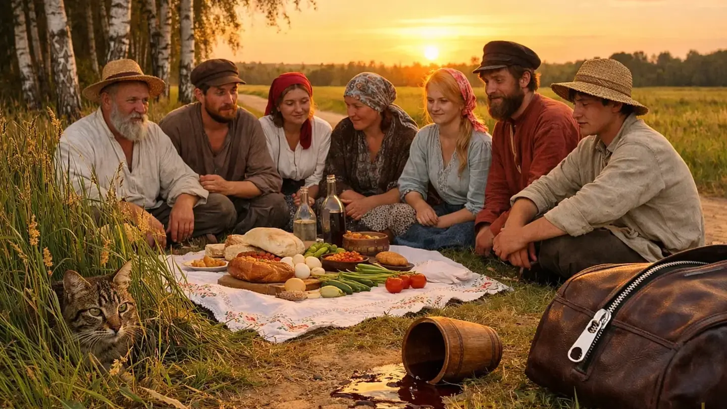 **Демьян:** 📷 *фото: стол с едой посреди поля*