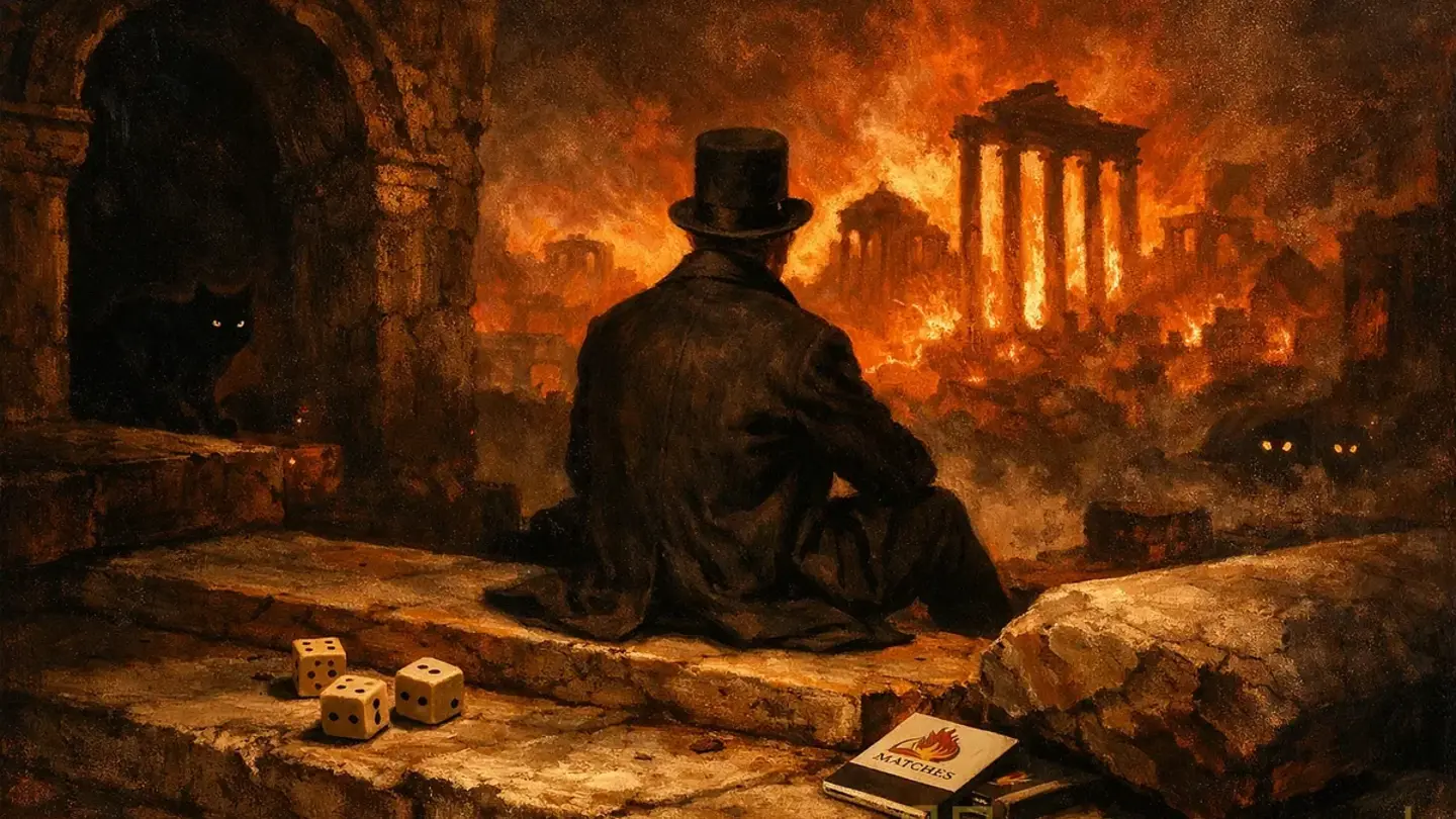 Не из злобы — нет. Не в приступе ярости. Константинополь горел семь дней. Рим — меньше. Париж он поджёг и уехал, даже не дождавшись, пока займётся как следует. В груди у него что-то такое, для чего в 1901 году слов просто не было. Фрейд только выпустил «Толкование сновидений», и ни у автора, ни у читателей не было инструментов, чтобы назвать то, что происходило с Джефсоном. Сегодня мы сказали бы: диссоциация, экзистенциальный коллапс, утрата смысла. Тогда — просто смотрели, как он едет дальше и снова разводит огонь. Пустой человек в пустом мире жжёт, потому что огонь хотя бы виден.