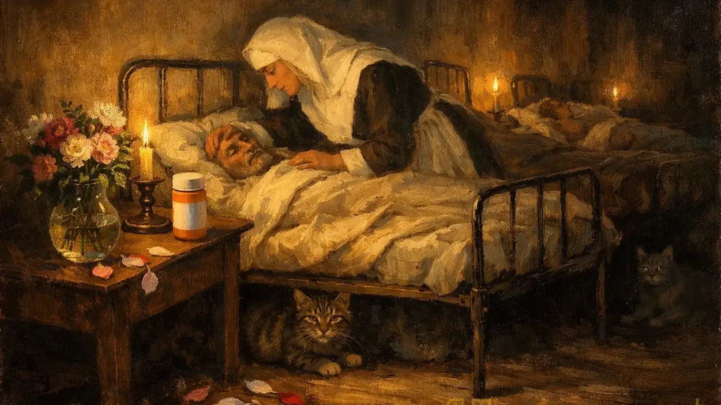 Больница эта, содержавшаяся на пожертвования благотворителей, представляла собой длинное серое здание с высокими потолками и узкими окнами. Палаты были переполнены страждущими всех сословий, объединёнными общей бедой — нищетой и болезнью. Сёстры милосердия, молодые женщины в тёмных платьях и белых передниках, неустанно сновали между койками, облегчая страдания умирающих.