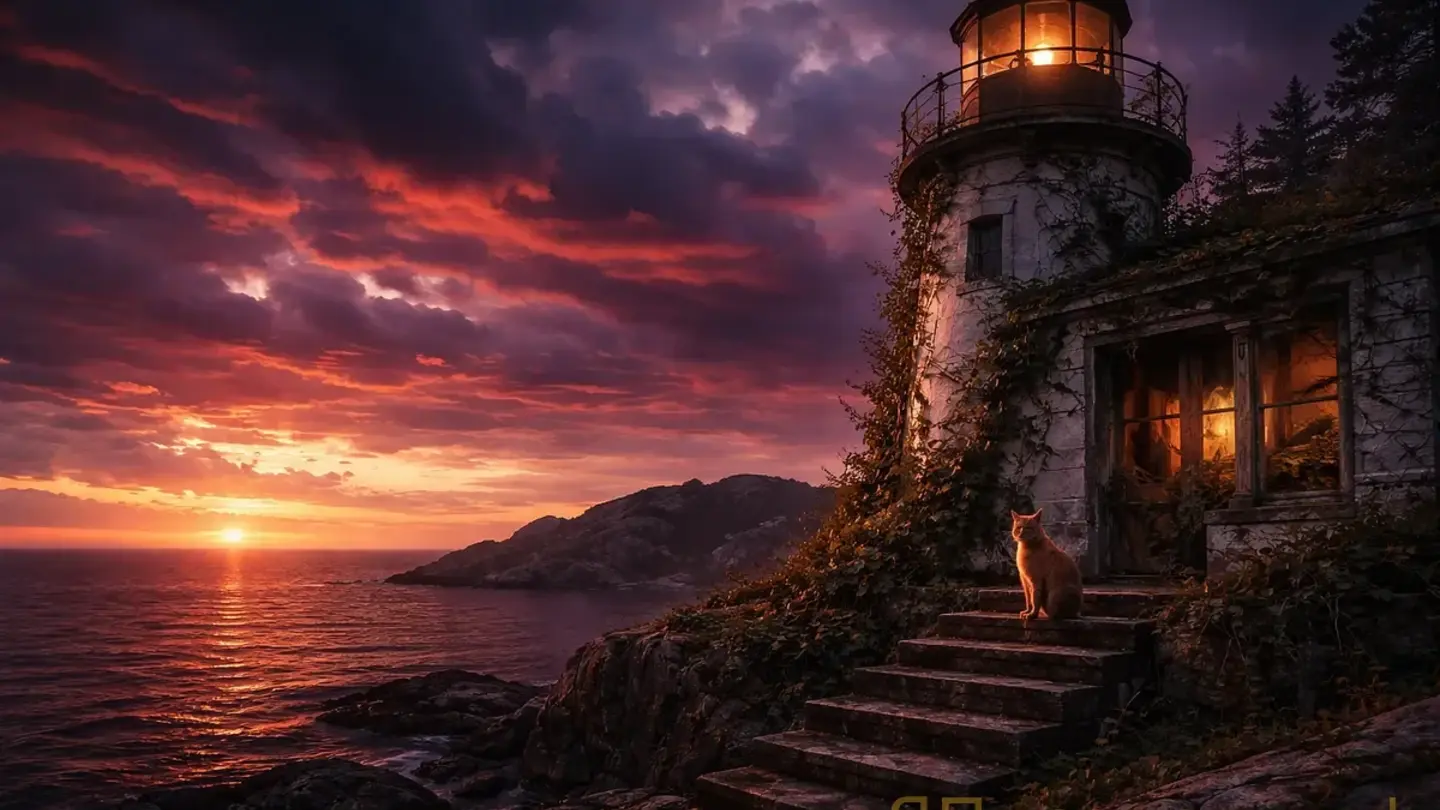 За окном маяка кричали чайки. Солнце садилось, окрашивая море в багровый цвет.