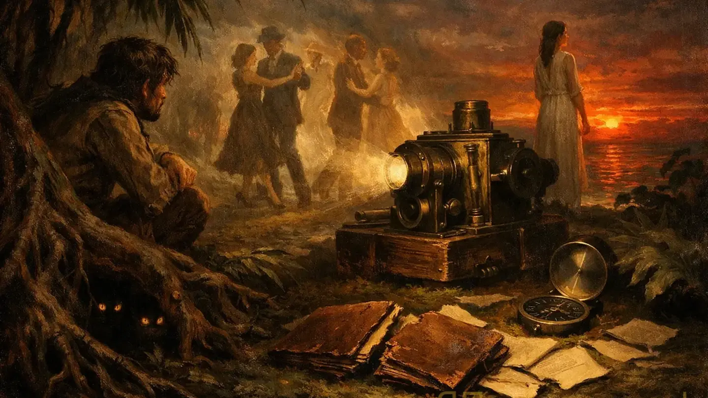 Что это такое — призраки? Галлюцинации от голода? Нет. Есть машина. Морель — тот самый, в честь которого названа книга — изобрёл устройство для записи реальности. Всей реальности: не просто изображение, а звук, запах, прикосновение, температура воздуха, ощущение ткани под пальцами. Он записал одну неделю жизни этих людей — и теперь она воспроизводится вечно. Без остановки. Снова и снова одна и та же неделя. Фаустина смотрит один и тот же закат бесконечное число раз, не зная об этом — она запись, она идеальная и мёртвая.