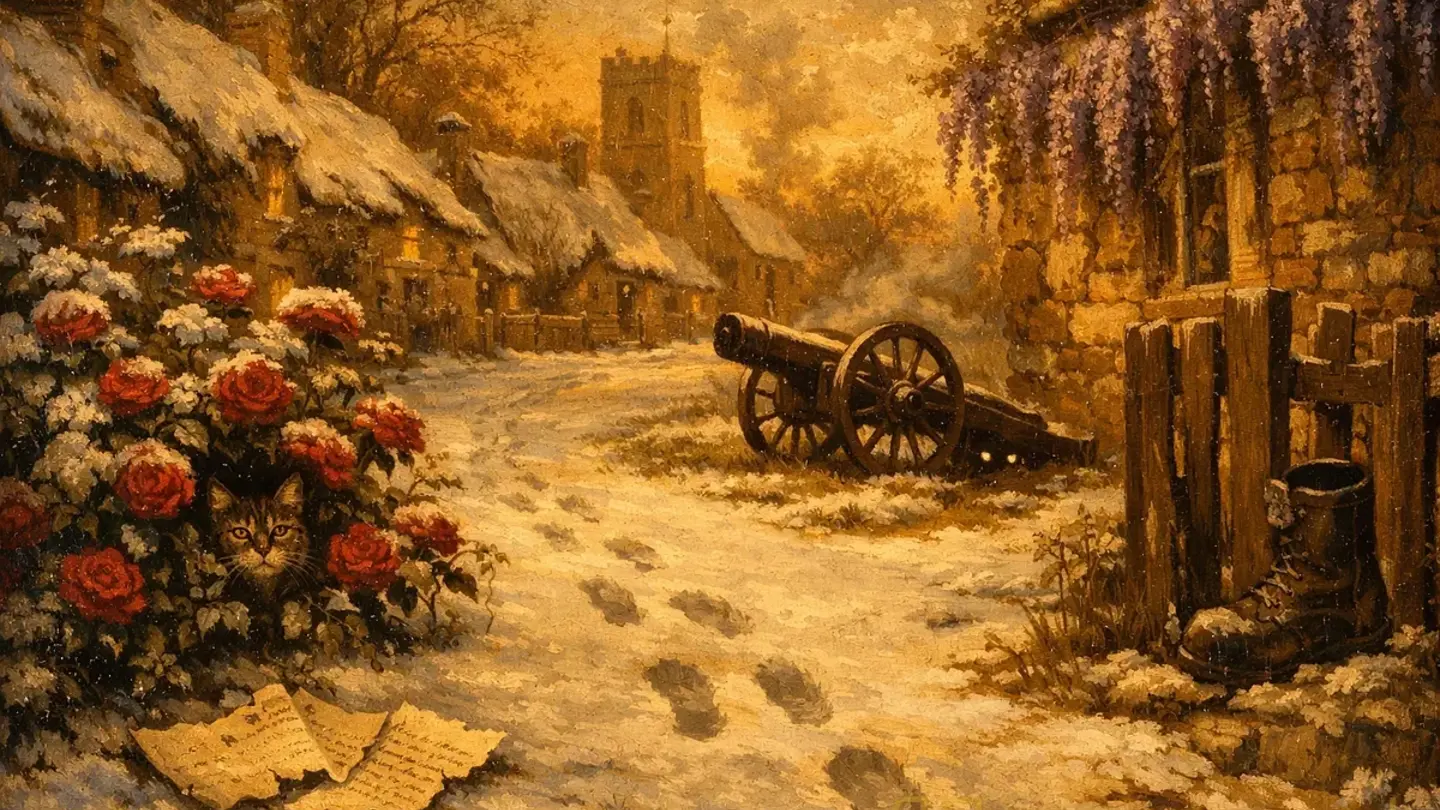 Это было абсурдно. Совершенно, издевательски абсурдно — после недели духоты, после глициний, после всего. Он повалил ночью, крупный и мокрый, и к утру лежал слоем в два дюйма. Миссис Банк, жившая на Хай-стрит, обнаружила поутру, что её розы — алые, майские, едва распустившиеся — торчат из белого по самые бутоны.
