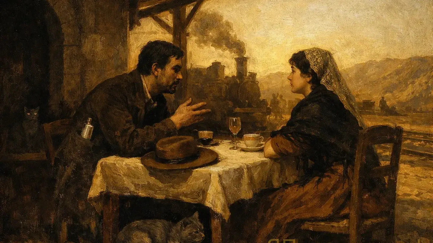 Хемингуэй показал механизм в рассказе «Холмы как белые слоны». Мужчина и женщина сидят на испанской станции. Говорят о напитках, о видах из окна. Слово «операция» появляется один раз — и сразу уходит. Больше ничего прямого. Читатель понимает всё сам.